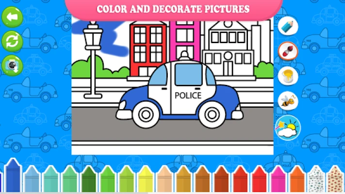 Bebaskan potensi seni si manja melalui sesi mewarna dan menghias yang mengasyikkan. Dengan jari kecil mereka, anak anda boleh melukis dan mewarna pelbagai latar belakang yang menarik, serta memperindahkan halaman mewarna bertemakan kereta dan trak dengan pelbagai pelekat cantik yang tersedia. Setelah karya agung mereka siap, mereka boleh menyimpannya dalam galeri peribadi untuk kenangan manis dan berkongsi kebanggaan mereka dengan keluarga dan rakan-rakan, memupuk keyakinan diri dan rasa pencapaian yang tidak ternilai.
