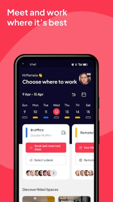 Bagi pekerja, Nibol adalah pembantu peribadi anda yang memastikan setiap hari kerja anda berjalan lancar. Bayangkan kemudahan untuk melihat di mana rakan sekerja anda telah menempah ruang kerja pada hari tertentu, membolehkan anda merancang kolaborasi dengan lebih baik. Anda boleh menempah stesen kerja yang sesuai, bilik mesyuarat untuk perbincangan penting, malah tempat letak kereta syarikat yang disediakan. Aplikasi ini juga membolehkan anda menjemput pelawat luar ke ibu pejabat dan menerima notifikasi automatik setibanya mereka, memastikan pengalaman tanpa cela. Tidak hanya itu, dapatkan makluman apabila bungkusan peribadi anda tiba di kaunter penerimaan dan, bergantung kepada polisi syarikat, terokai serta tempah ruang kerja atas permintaan luaran seperti ruang koworking atau kafe pintar yang dilengkapi.