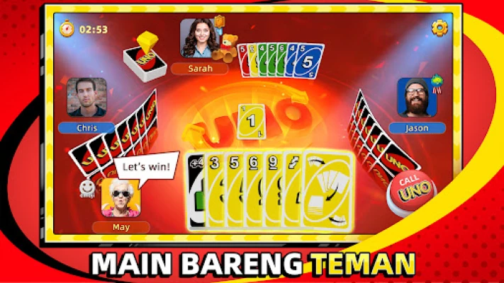 Nikmati permainan kartu klasik UNO!™ di perangkat seluler Anda! Main di mana saja dengan aturan baru, turnamen dunia, dan mode menarik. Pengalaman yang menyenangkan dan berkesan untuk semua, dari veteran hingga pemain baru. Sesuai untuk seluruh keluarga!