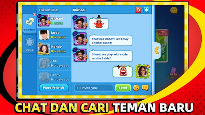 Bina pasukan impian anda atau bersaing secara solo! Dengan UNO!™, anda boleh berganding bahu dengan rakan atau ahli keluarga dalam mod 2v2 yang strategik, bekerjasama untuk mengurangkan kad di tangan anda berdua dan menumpaskan pasukan lawan. Jalin persahabatan baharu melalui kelab eksklusif, saling menghantar hadiah, dan menyusun strategi kemenangan anda. Sambil itu, uji kemahiran anda di arena pertandingan global. Sertai kejohanan siri dunia dan acara khas untuk memburu hadiah percuma yang menarik, mendaki papan pendahulu dan menonjolkan kehebatan anda kepada semua.