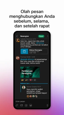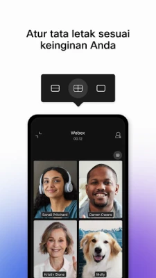 Perhubungan tanpa sempadan kini dalam genggaman anda dengan Aplikasi Webex. Direka untuk memastikan setiap perbualan bermakna, Aplikasi Webex membawa pengalaman mesyuarat ke tahap baharu dengan terjemahan masa nyata untuk lebih 100 bahasa, memastikan tiada lagi halangan komunikasi. Nikmati tata letak mesyuarat yang boleh diperibadikan agar sesuai dengan gaya anda, dan manfaatkan teknologi pengurangan hingar latar belakang yang inovatif. Ini menjamin setiap peserta dapat dilihat dan didengar dengan jelas, di mana jua mereka berada, menjadikan setiap sesi lebih produktif dan inklusif.
